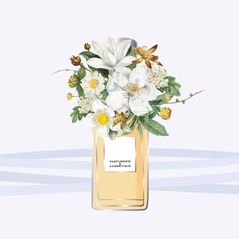 - Srce: bogata bela cvetlica (jasmin), kremasta, žametna.